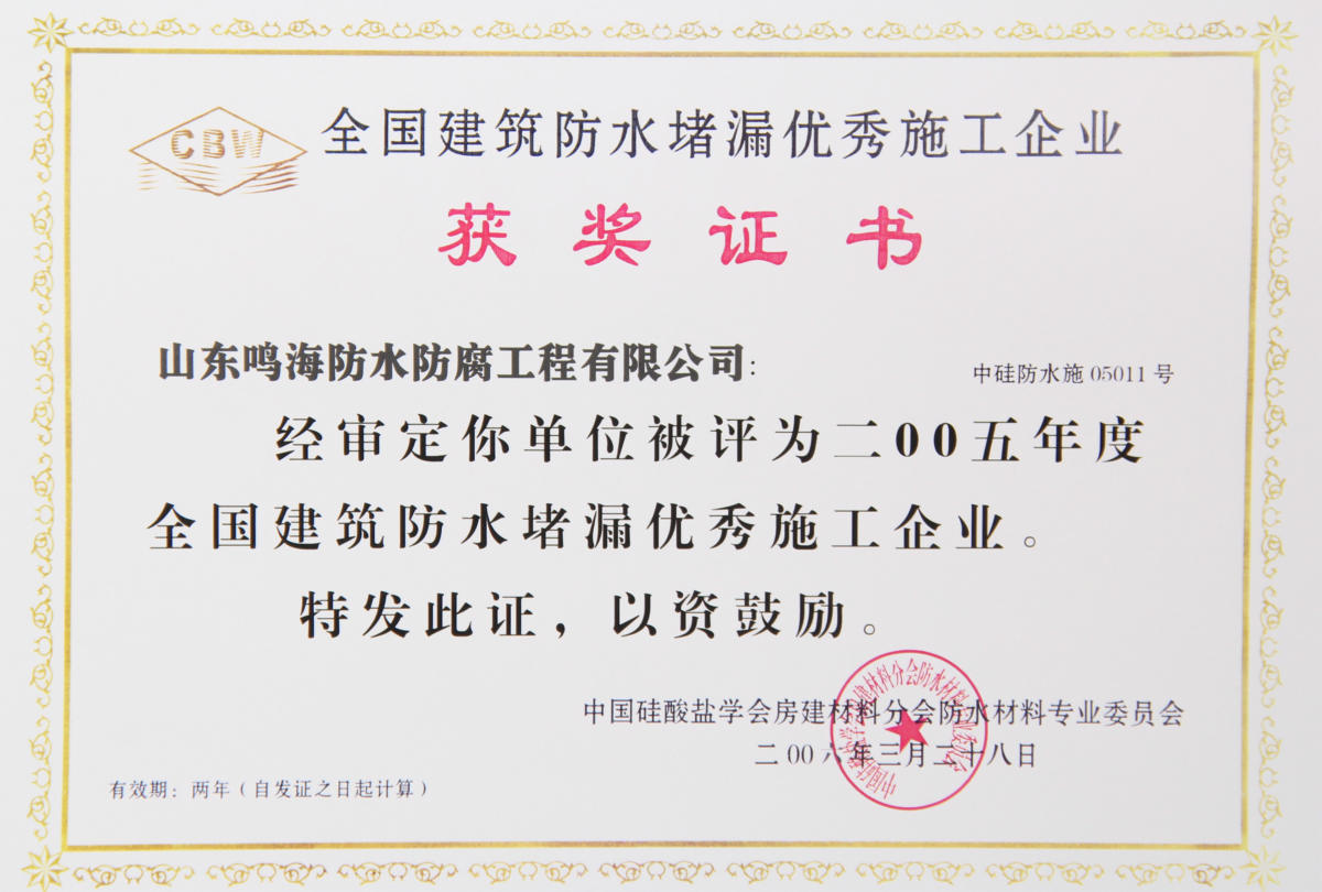 山東鳴海防水集團(tuán)有限公司是科工貿(mào)為一體的綜合性企業(yè),成立于一九九八年,下設(shè)三個(gè)子公司、一個(gè)分公司、五個(gè)辦事處,分別為山東宇鳴防水保溫有限公司、威海市鳴海防水材料有限公司、威海宇鳴新型材料有限公司,宇鳴科技有限公司是中國(guó)建筑協(xié)會(huì)理事單位,連年評(píng)為企業(yè)誠(chéng)信單位。在全國(guó)成立了多個(gè)辦事機(jī)構(gòu),分別為新疆、銀川、蘭州、青海、青島、大連、濰坊、北京等多個(gè)城市。